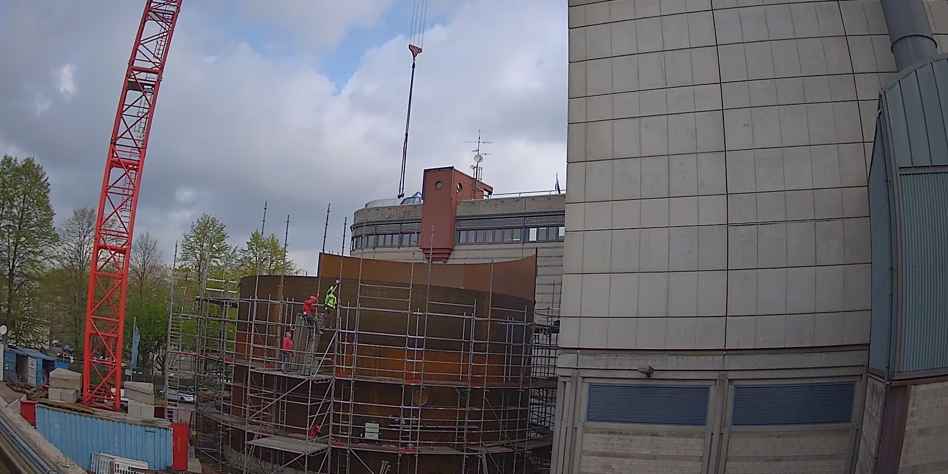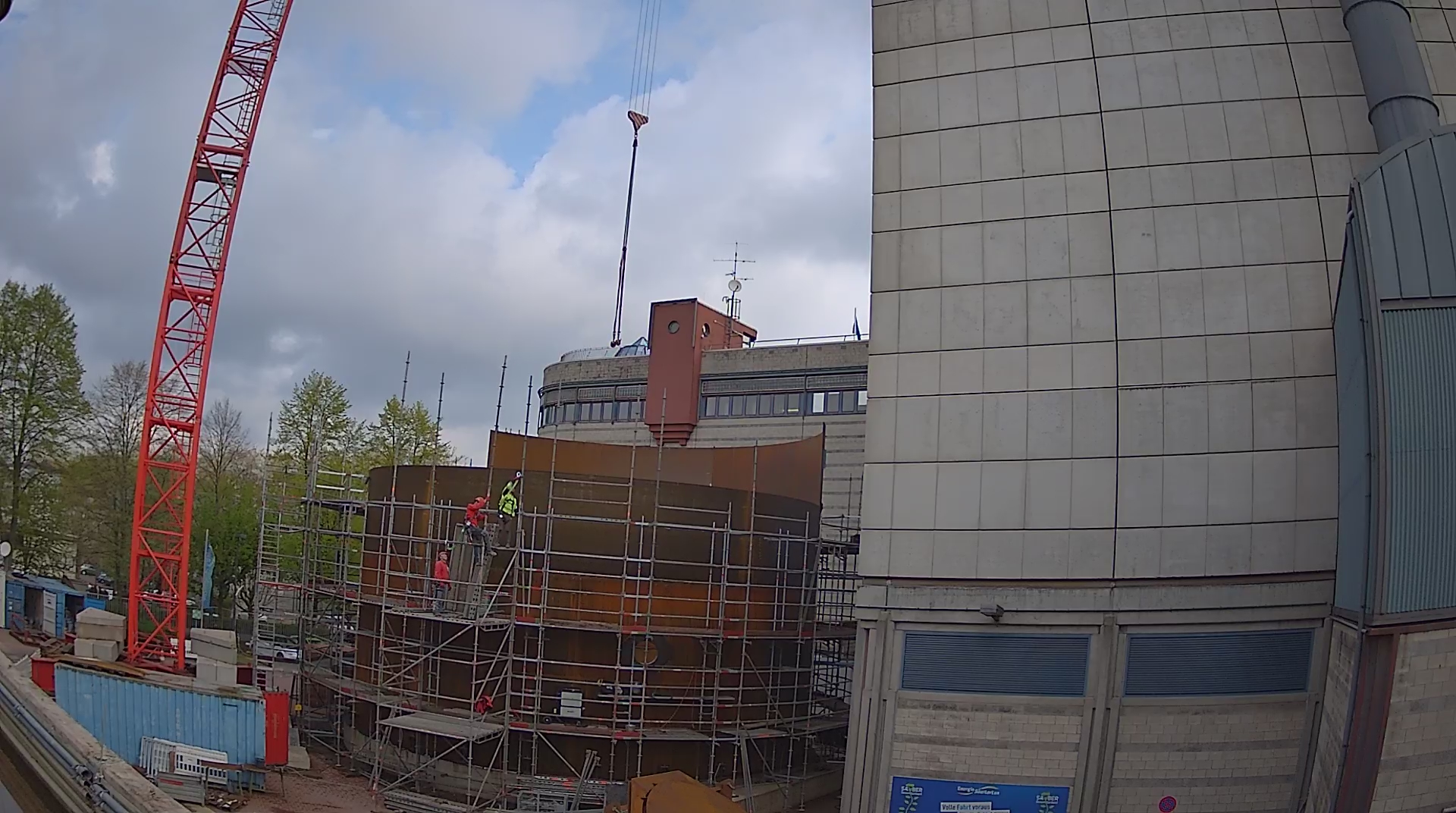 wie gewünscht übersende ich Ihnen hiermit die ersten Bilder des Gerüstaufbaus zur weiteren Verwendung.